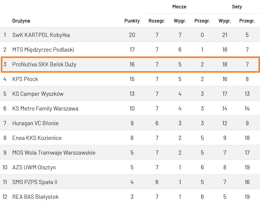 Po tym spotkaniu ProNutiva SKK Belsk Duży spadła na 3. miejsce w ligowej tabeli. Najbliższe spotkanie belski zespół rozegra 15 listopada, kiedy to w Warszawie zmierzy się z MOS Wola Tramwaje Warszawskie.