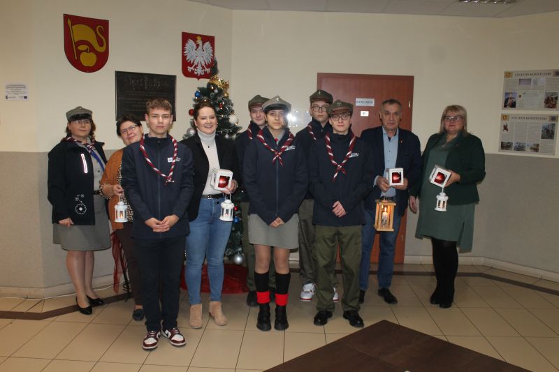 Harcerze Szczepu Drużyn im. Prezydenta Ryszarda Kaczorowskiego w Belsku Dużym na czele z Komendantem – dh. pwd. Barbarą Sibilską przekazali Betlejemskie Światło Pokoju pracownikom Urzędu Gminy oraz Gminnego Zespołu Obsługi Placówek Oświatowych.