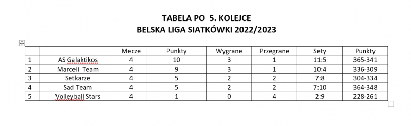 Ostatnia kolejka pierwszej rundy Belskiej Ligi Siatkówki przebiegła pod znakiem bardzo wyrównanych i stojących na wysokim poziomie spotkań.