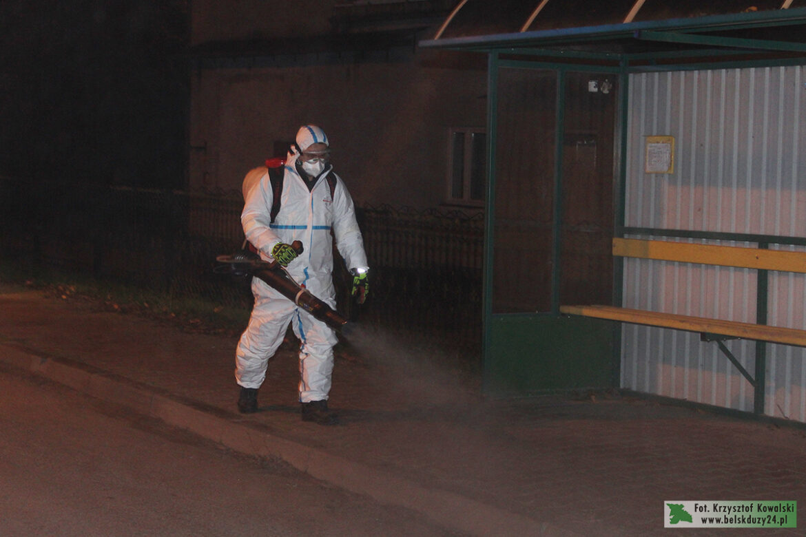 W nocy z 10 na 11 listopada br. strażacy z OSP Belsk Duży oraz OSP Lewiczyn przeprowadzili dezynfekcję przestrzeni publicznej gminy Belsk Duży.