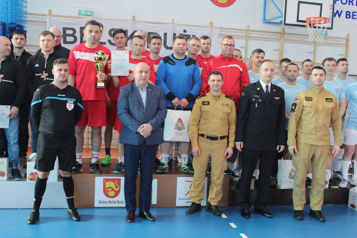 Na zakończenie wszystkim funkcjonariuszom nagrody wręczali zaproszeni goście. Gratulował również Przewodniczący Rady Gminy Belsk Duży. – Cieszę się, że po raz kolejny Komenda Powiatowa zorganizowała zmagania piłkarskie w naszej pięknej hali – cieszył się Bogusław Sikorski.
