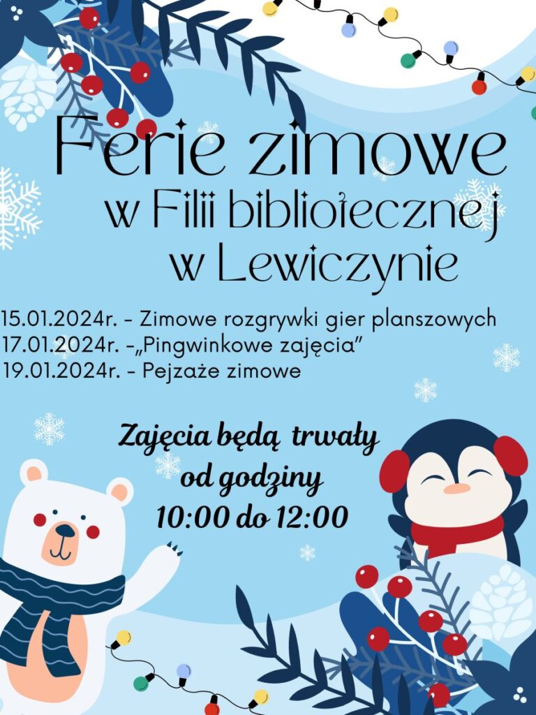 Filia Biblioteczne w Lewiczynie zaprasza na zajęcia.