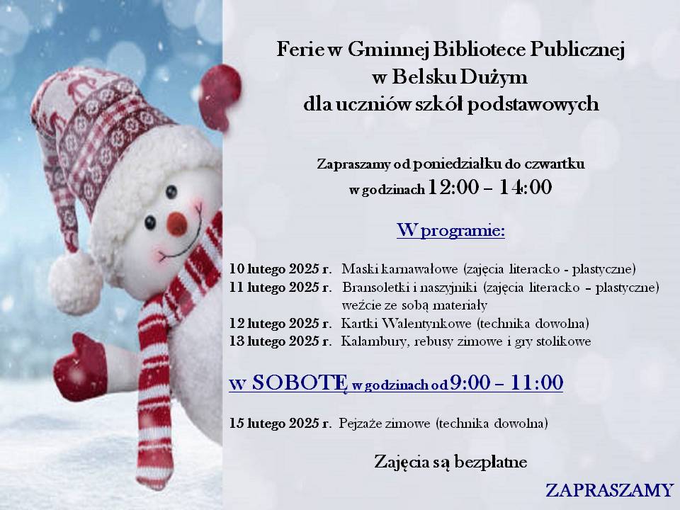 Spędź ferie zimowe w Gminnej Bibliotece Publicznej w Belsku Dużym!