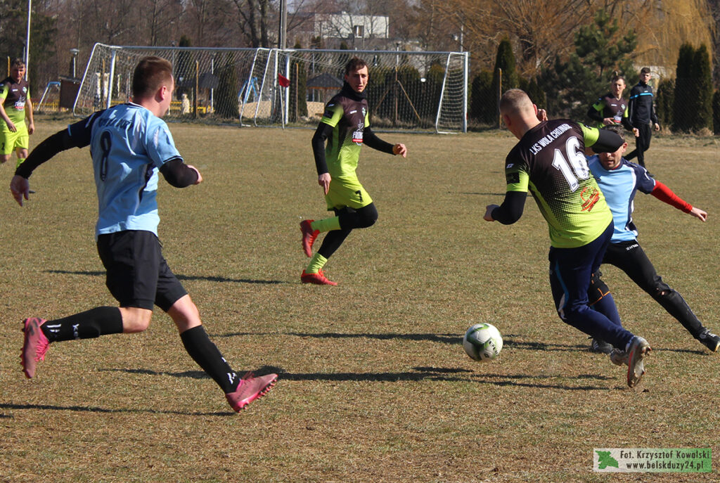 Piłkarze GKS-u Belsk Duży przygotowujący się do startu rundy wiosennej pewnie wygrali z reprezentantem piotrkowskiej A-klasy, LKS Wola Wola Chojnata 8:3.