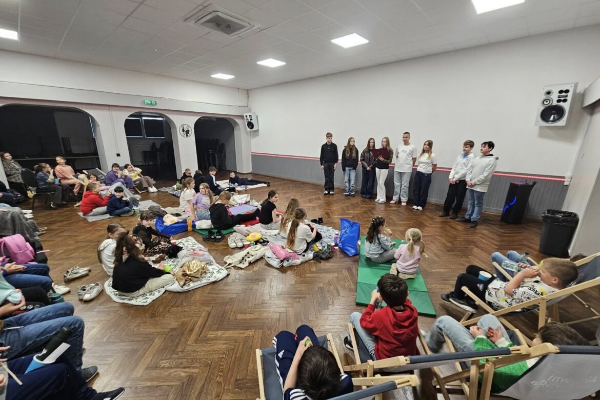 Atmosfera była bardzo wesoła, a przekąski pyszne. Z radością patrzyliśmy jak młodsi i starsi koleżanki i koledzy wspólnie spędzają czas. Nad bezpieczeństwem (i popcornem) czuwały Panie – Ilona i Kasia. A w porządkach pomogła nam także Mama Juliusza.