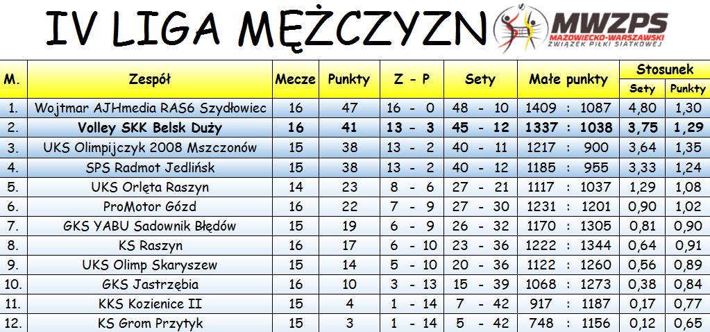 Po tym spotkaniu Volley SKK Belsk Duży wskoczył na drugie miejsce w ligowej tabeli. Na koncie belskiego zespołu jest 41. punktów. Kolejny mecz już za tydzień we własnej hali, a rywalem podopiecznych Kamila Trzcińskiego będzie szósty w tabeli ProMotor Gózd.