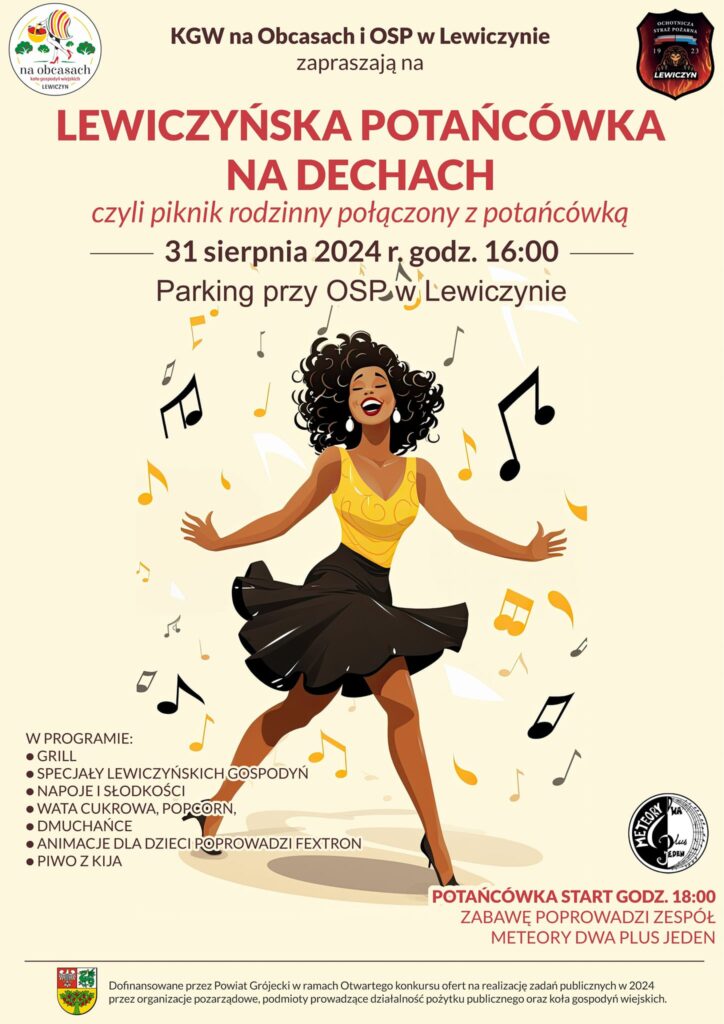 Koło Gospodyń Wiejskich “Na Obcasach” oraz OSP Lewiczyn zapraszają na lewiczyńską potańcówkę na dechach połączoną z piknikiem rodzinnym.