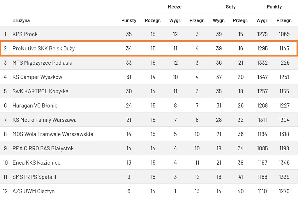 ProNutiva SKK Belsk Duży – KPS Płock 2:3 (23:25, 20:25, 25:16, 25:23, 10:15)