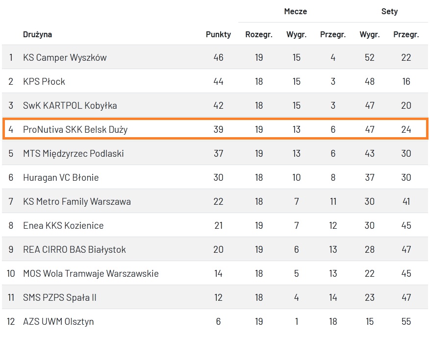 Po tym pojedynku gracze z Belska Dużego przesunęli się na 4. miejsce w tabeli. Teraz przed nimi pojedynki z Huraganem VC Błonie (21 lutego) oraz KS Metro Family Warszawa (28 lutego) na wyjeździe oraz domowe spotkanie z MTS Międzyrzec Podlaski (7 marca). Po tych trzech pojedynkach będzie wiadomo czy belski zespół zagra w rozgrywkach play-off.