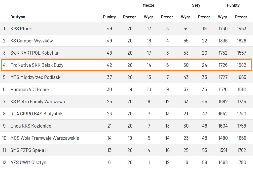 Dzięki zwycięstwu w Błoniu oraz porażce MTS Międzyrzec Podlaski z SwK KARTPOL Kobyłka belski team umocnił się na 4. miejscu dającym udział w play-offach. Za tydzień ProNutiva SKK Belsk Duży zagra w Warszawie z miejscowym KS Metro Family. Jeśli gracze Karola Kościńskiego rozstrzygną je na swoją korzyść już na 100% wezmą udział w turnieju finałowym II Ligi, grupy II. Belszczanie rozgrywki zakończą natomiast 7 marca pojedynkiem z MTS-em.