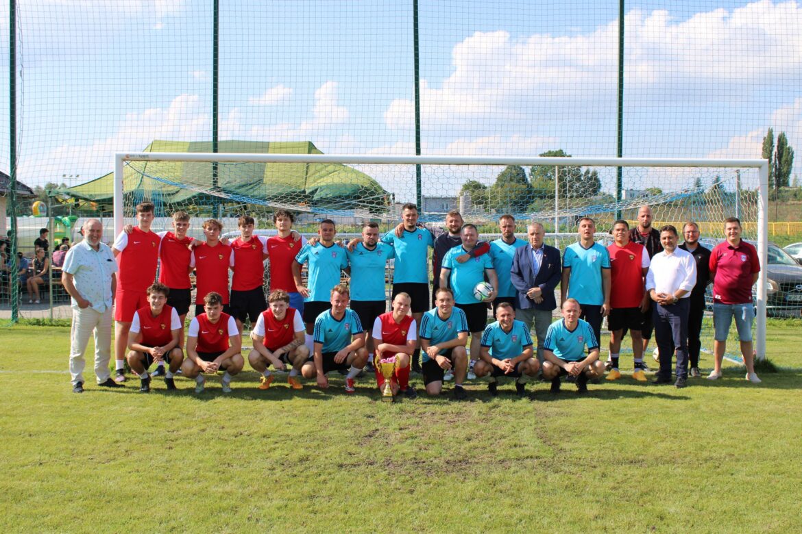Piękna słoneczna pogoda towarzyszyła piłkarskim zmaganiom na boisku gminnym. Podczas turnieju rozegrano mecz w formule 2x 30 minut. W regulaminowym czasie gry padł remis. Wojnę nerwów podczas rzutów karnych lepiej wytrzymali starsi zawodnicy, którzy wygrali 9:8 i mogli podnieść do góry puchar.
