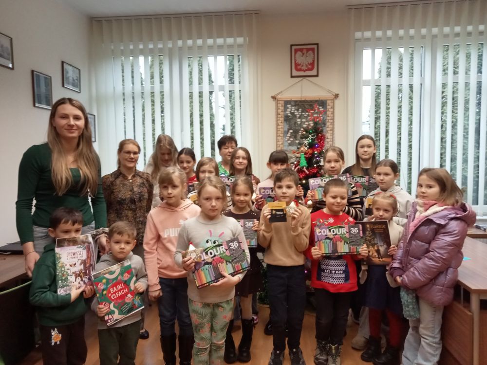 W poniedziałek, 29 grudnia 2025 roku w gminnej bibliotece goszczono uczestników Konkursu Świątecznego pod hasłem „Biblioteczna Choinka Marzeń”.
