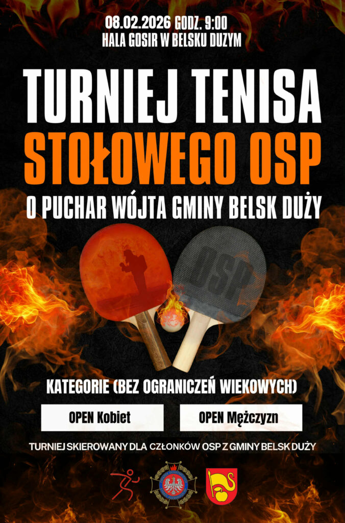 Sport StrażTurniej Tenisa OSP o Puchar Wójta Gminy Belsk Duży Autor: Krzysztof Kowalskiaccess_time2 godziny temuchat_bubble_outlineDodaj komentarz W imieniu organizatorów – Zarządu Gminnego ZOSP RP w Belsku Dużym oraz Wójta Gminy Belsk Duży zapraszamy na Turniej Tenisa OSP o Puchar Wójta Gminy Belsk Duży. Wyświetlono: 48