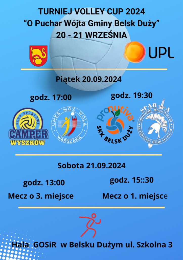 W piątek i sobotę, 20 i 21 września br. zapraszamy do hali belskiego GOSiR-u kibiców siatkówki na turniej “O Puchar Wójta Gminy Belsk Duży – Volley Cup 2024”.
