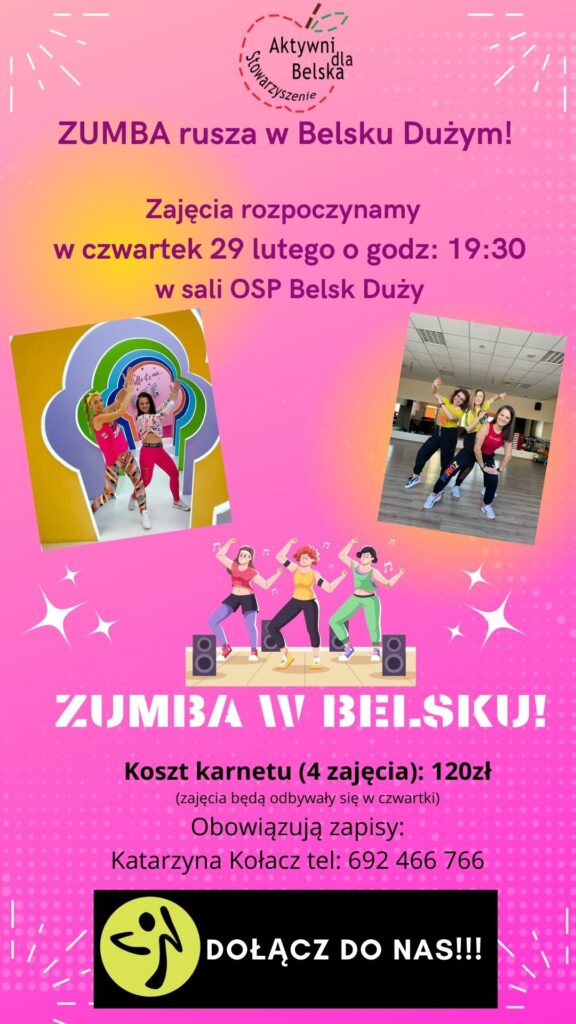 Ruszają zajęcia Zumby. Pierwsze spotkanie już w czwartek, 29 lutego o godz. 19:30 w sali OSP Belsk Duży.